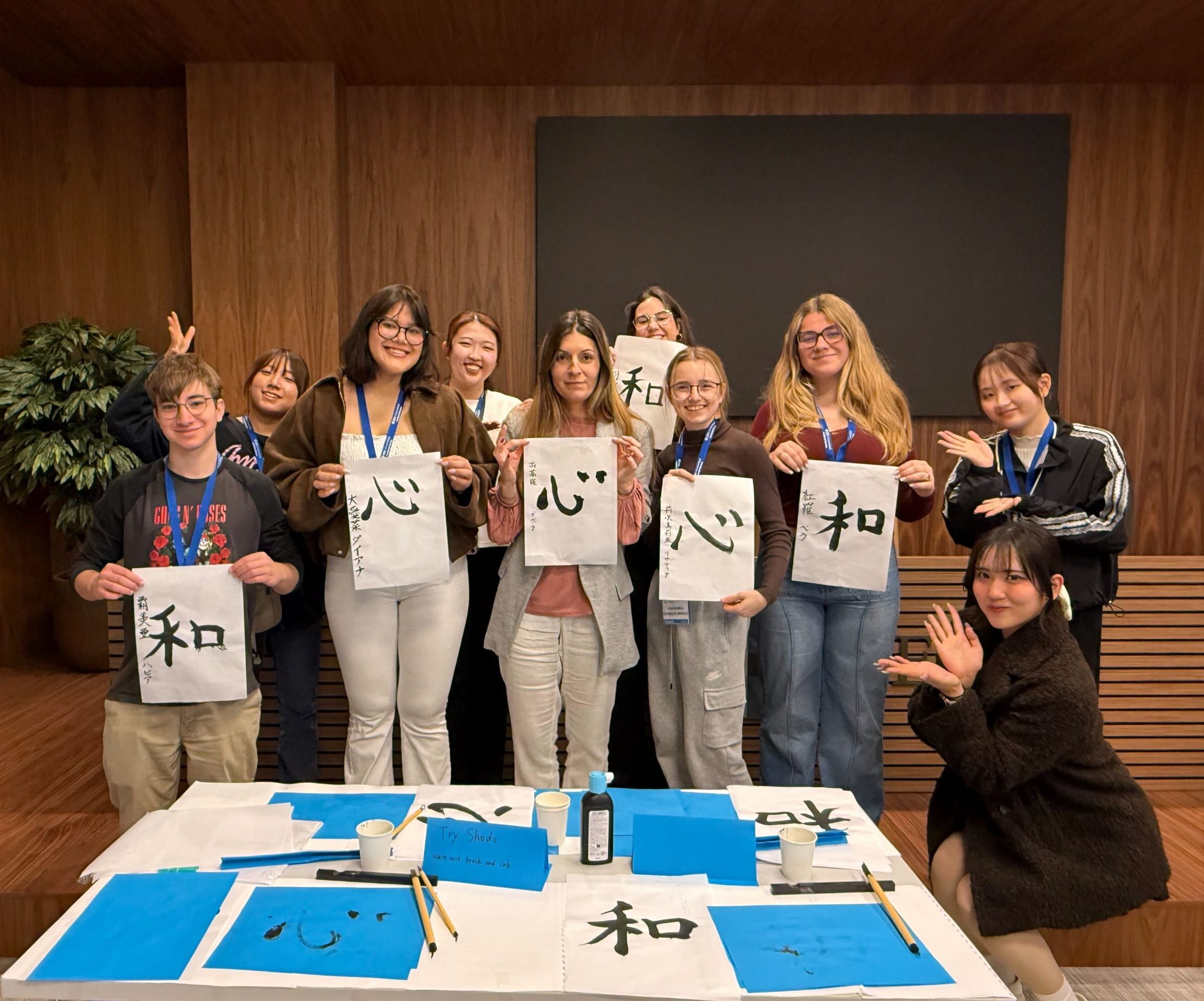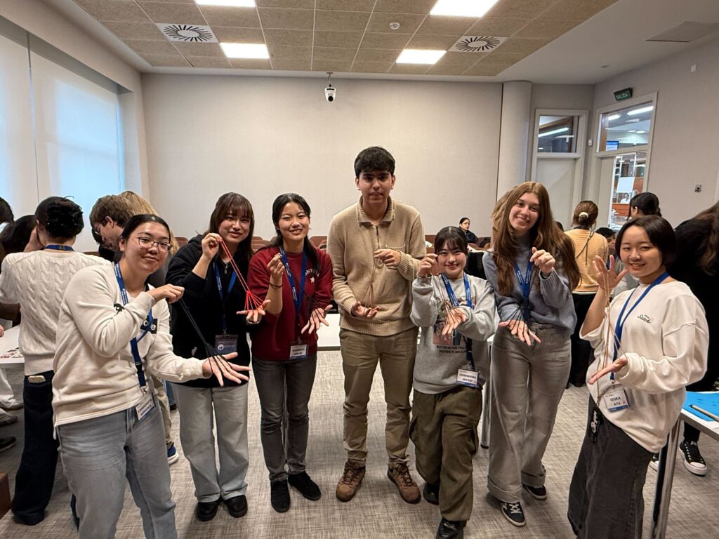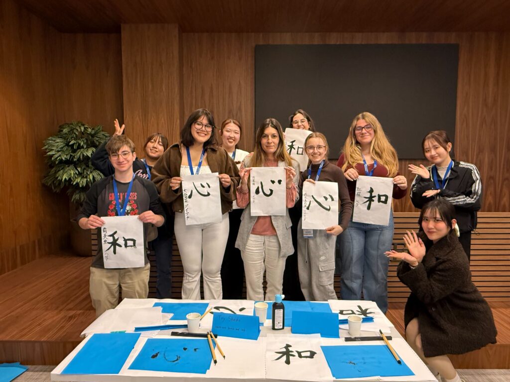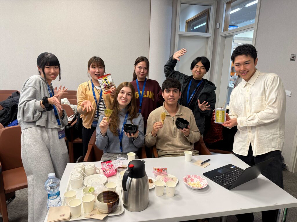 「Cultural Day」は関大生が4チームに分かれ、各チームで書道、茶道、花札、あやとりの4つをスペインの学生に紹介し実際に体験してもらうというイベントです。
